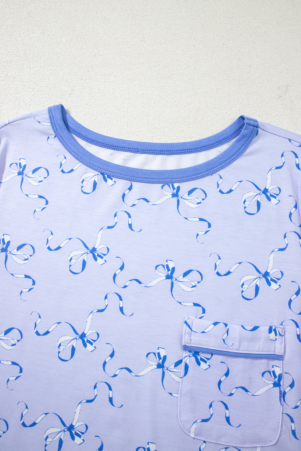 Sky Blue Bow Printed Ruffled Short Lounge Set
